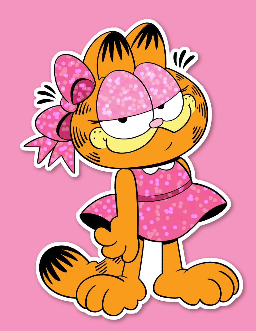 This oversized glittery sticker measures 4.5 inches tall and features a pink glittery finish.