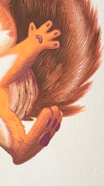 Walnut the Squirrel is an original, one-of-a-kind gouache painting by artist Becky Dreistadt. It is painted in gouache on 11x14 inch watercolor paper.